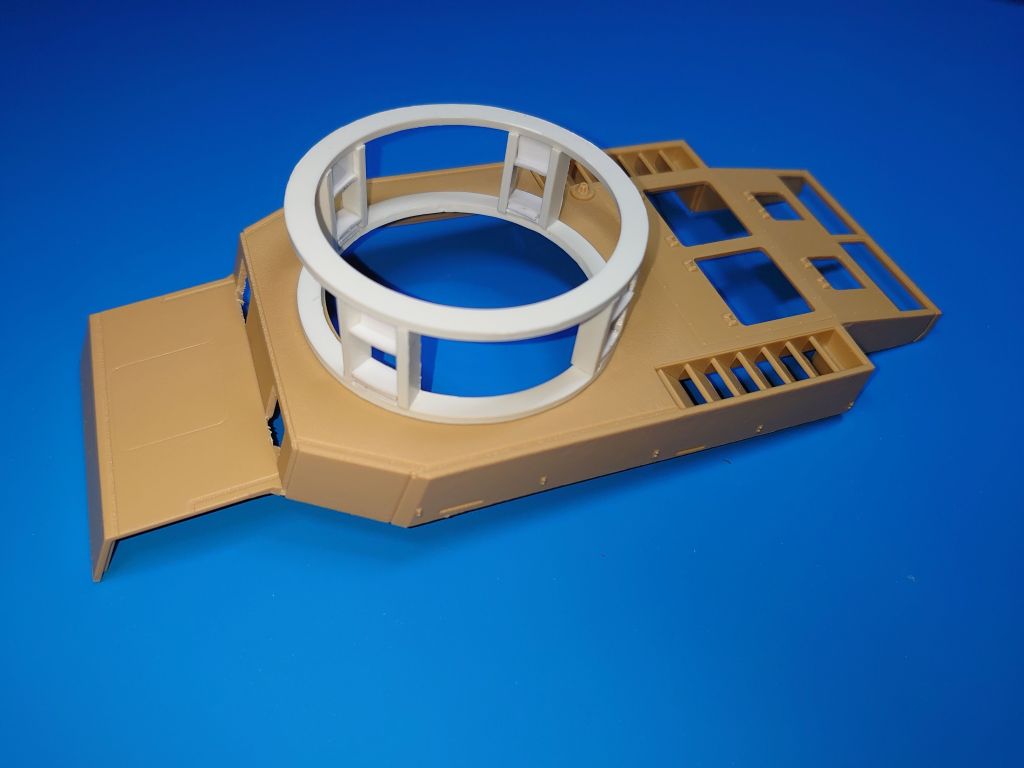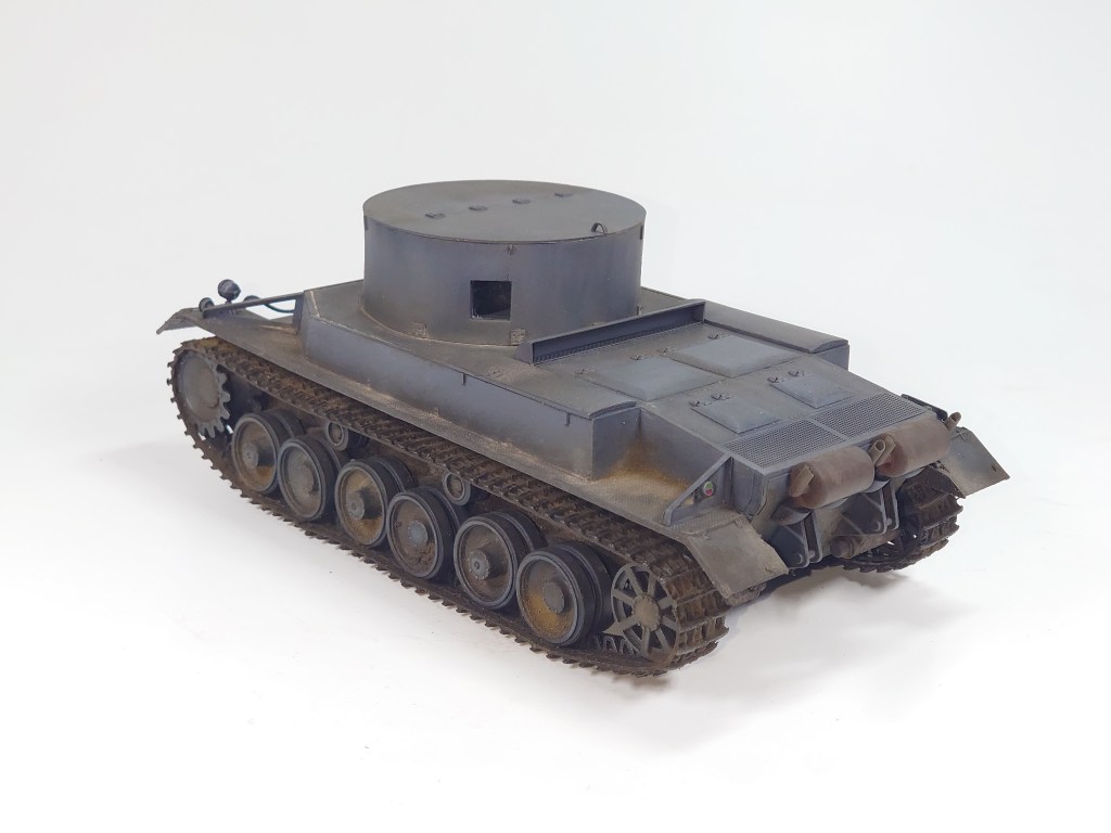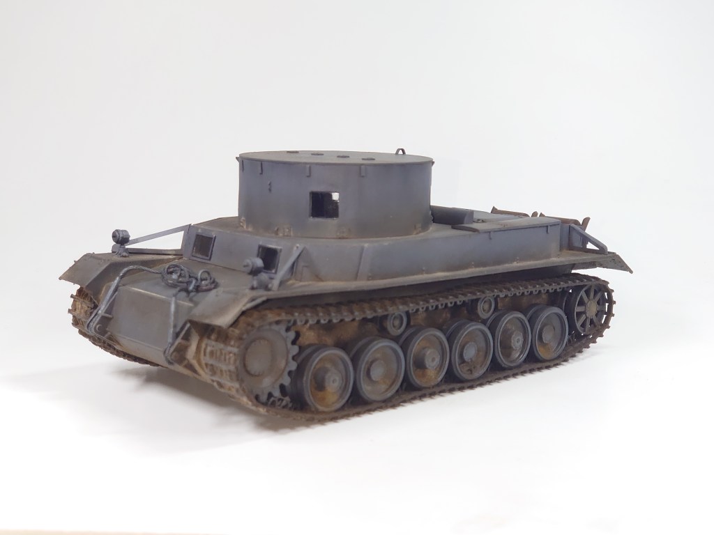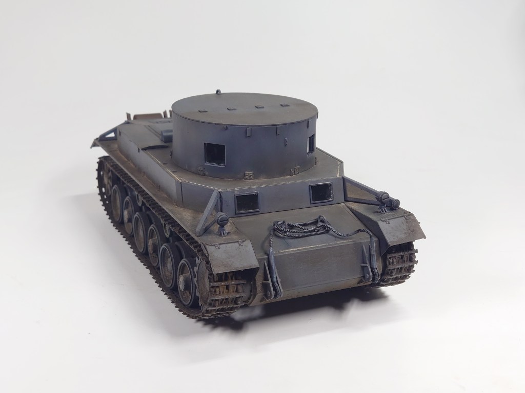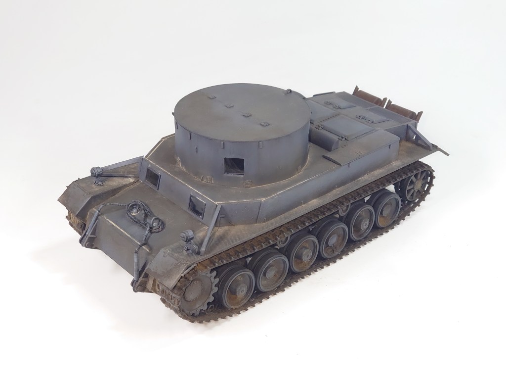 Building the test version of the vehicle required some scratch-building: the superstructure, the face-plate with windows, covers for the air outlets from the engine compartment, additional air ventilation behind the superstructure and round holders for attaching the towing cable.