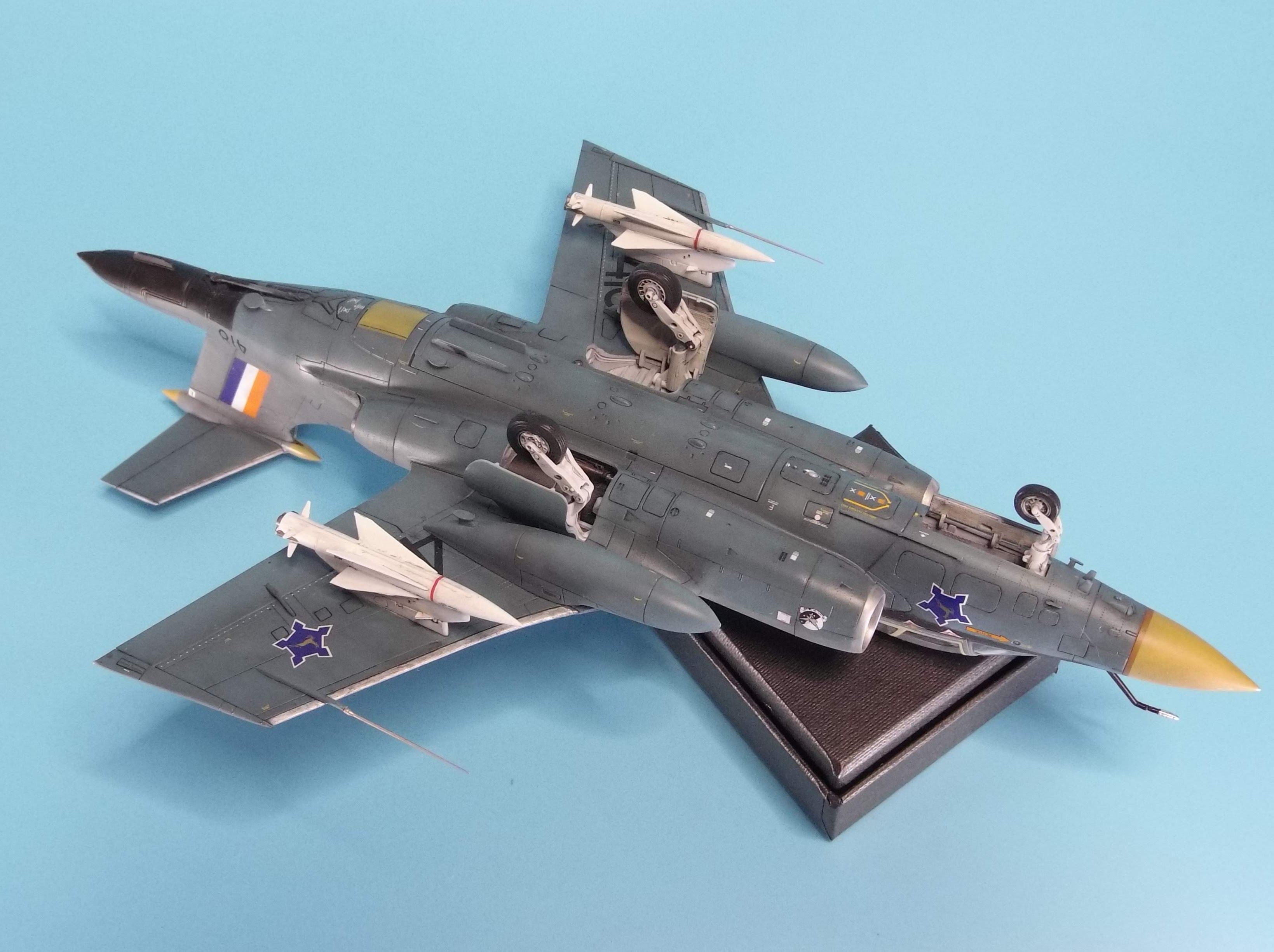 I added the end of the refueling probe and Pitot tubes from Master (this machine had two). In the cockpit and undercarriage wells, photo-etched additions from Eduard. Wheels from Eduard. In addition, resin Nord AS-30 missiles from PJ Production (very poor). I also made imitations of rivets.